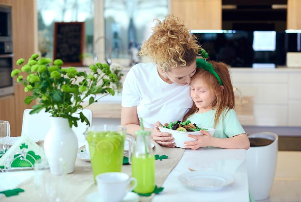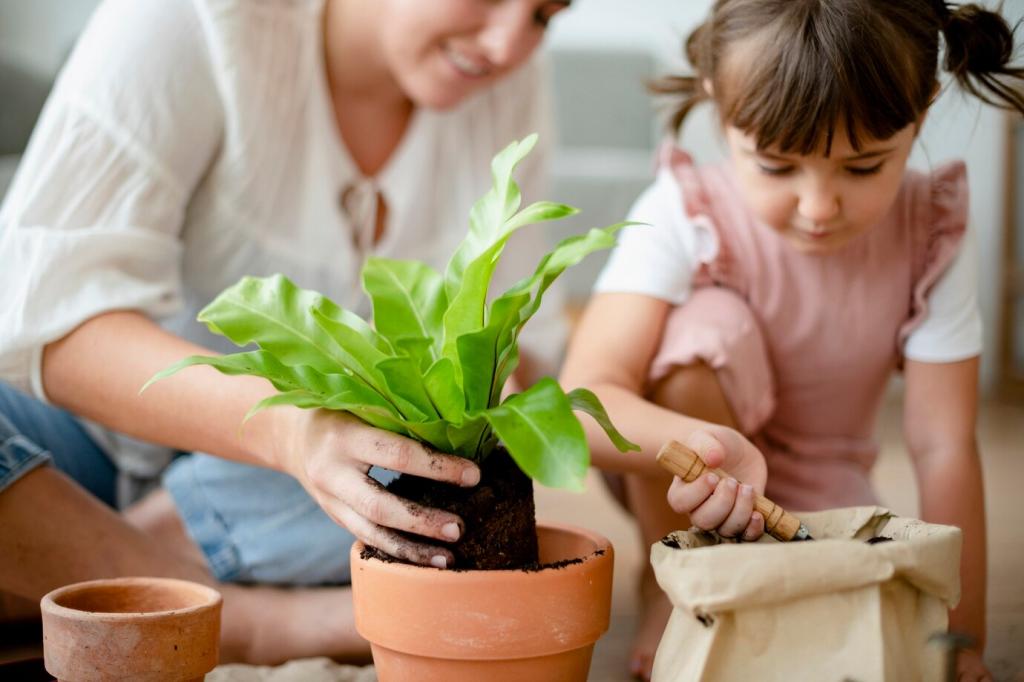 Haushalte mit kleinen Händen und neugierigen Pfoten profitieren von sanfteren Rezepturen. Dennoch gelten Grundregeln: Produkte unzugänglich lagern, Oberflächen trocknen lassen, Näpfe und Spielbereiche separat halten. So bleibt nachhaltige Möbelpflege sicher, alltagstauglich und entspannt.